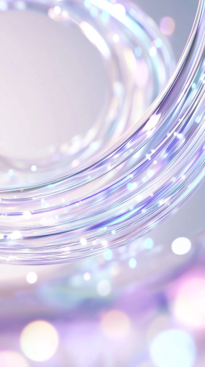A white background with holographic lines that have light purple and blue hues, resembling glass tubes. The focus is on the light waves, creating an ethereal effect. There\'s a large circle in front of them, and there may be some light reflections or refractions from these hologram rays. This abstract scene gives off a sense of futuristic technology and beauty. It can also create a dreamy atmosphere by combining it with other colors.