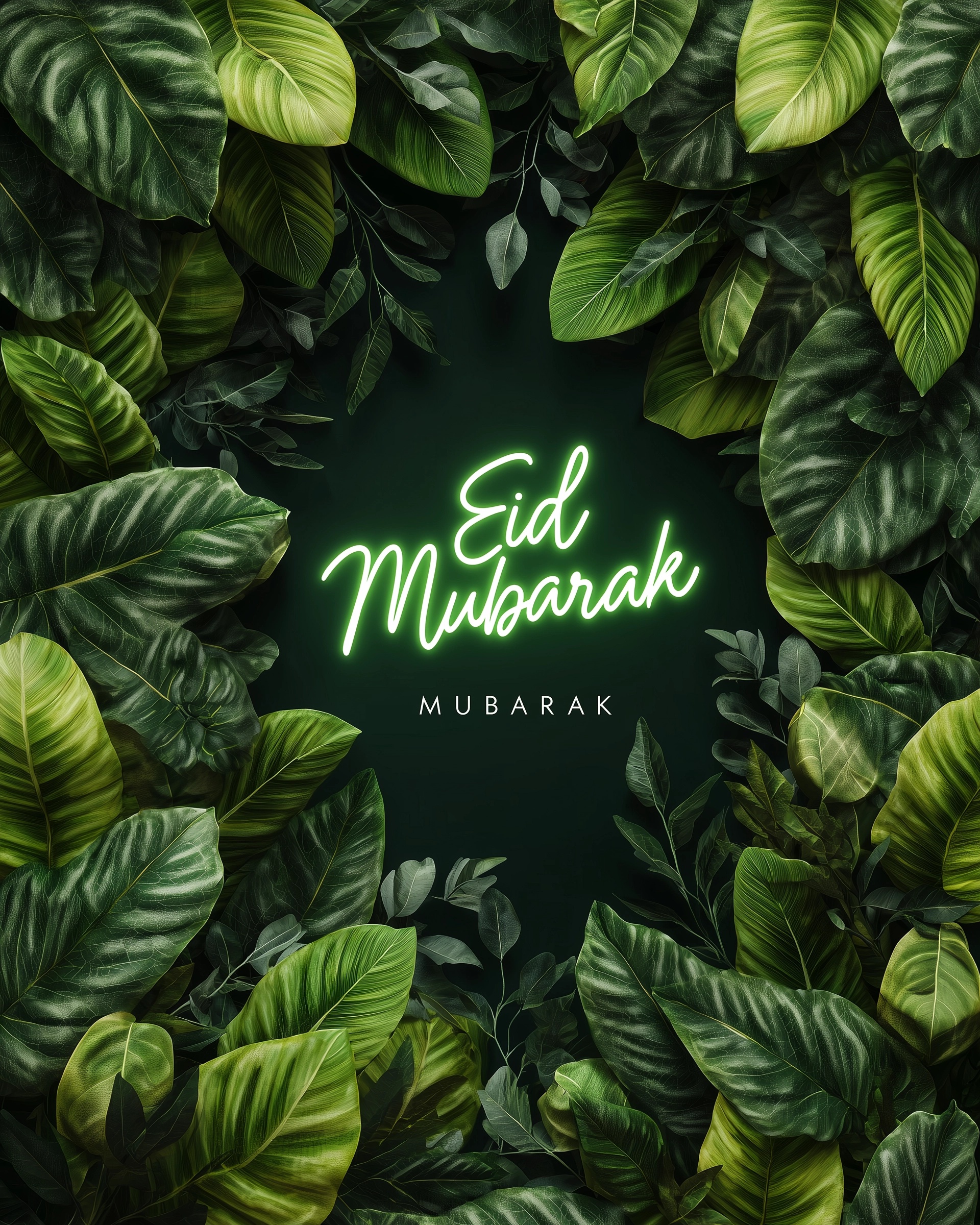 Download Eid Mubarak Neon Plants Wallpaper to your phone for free.