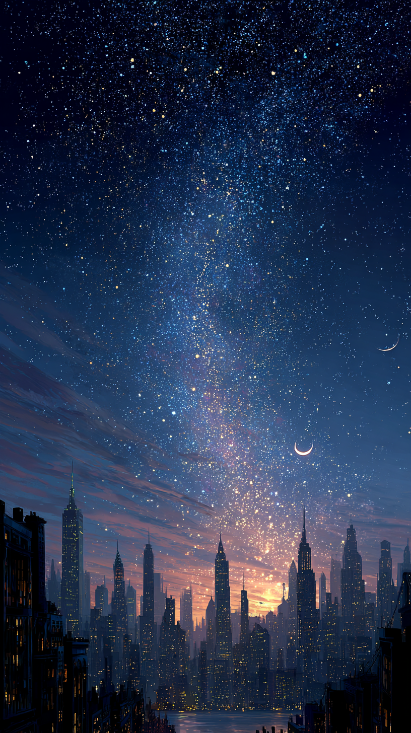 Download Starry Night Over New York City Wallpaper to your phone for free.